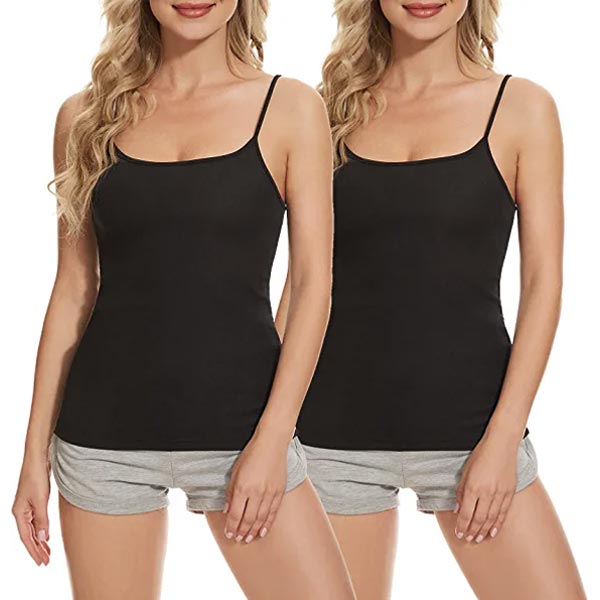 2 Pack Basic Camisole for Women Adjustable Long Spaghetti Strap Tank Tops Lightweight Cami Undershirts